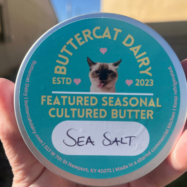 with Sea Salt Our signature cultured butter with sea salt, made from fermenting grass-grazed Ohio cream that is A2/A2 certified, with select live cultures and slow churning in small batches, packaged in a universally recycleable 4-oz aluminum tin. They're cute, practical and easy to share at the dinner table. This size is also great for gifting.