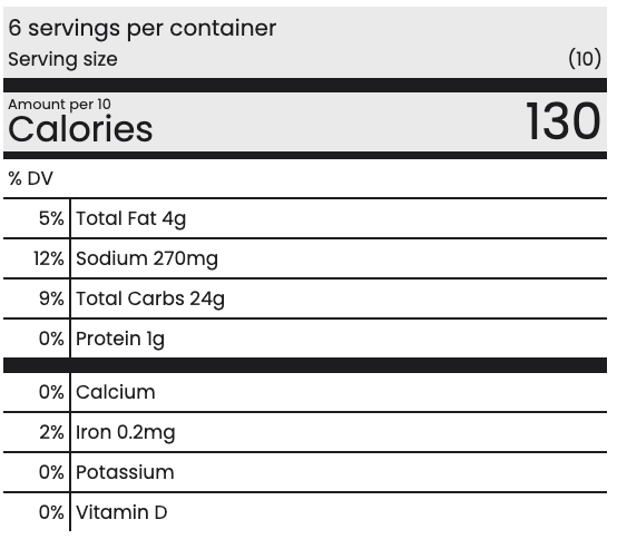 Ingredients:Corn Starch, Palm Fat, Corn Flour, Sugar, Soy Flour, Dextrose, Modified Corn Starch, Ammonium Bicarbonate, Cream of Tartar, Baking Soda, Sea Salt, Soy Lecithin, Guar Gum, Citric Acid, Natural Rosemary Flavor.