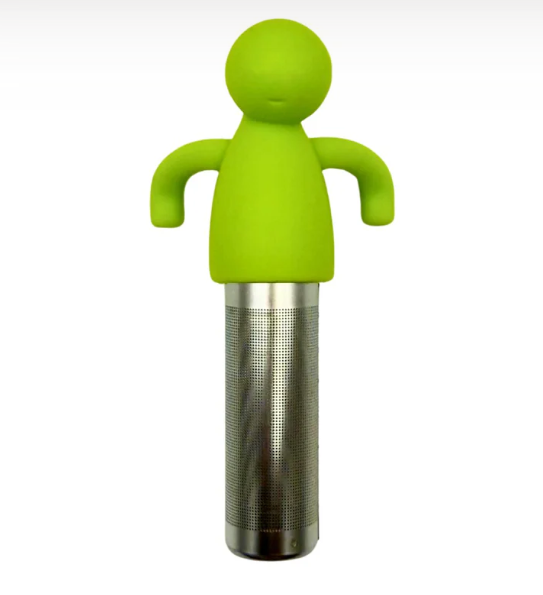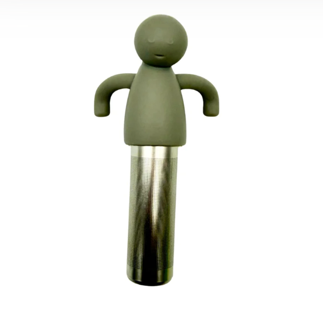 The Infuser Buddy features a fine-mesh stainless steel tube shaped brew basket for loose leaf tea, paired with a playful silicone stick-figure design that hangs securely on the rim of your mug. Fun and functional, it makes steeping tea easy and mess-free. This tea strainer is the perfect size for travel or commute.