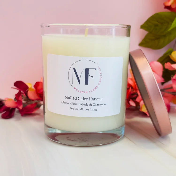 Mulled Cider is autumn in full color think crisp apple, juicy orange, and mixed berries simmering with cinnamon, clove, and a hint of spice. Fresh green notes and uplifting citrus blend with soft musk, making every burn feel like a cozy get-together around the table. This candle is all about warmth, joy, and celebrating the season’s sweetest moments.