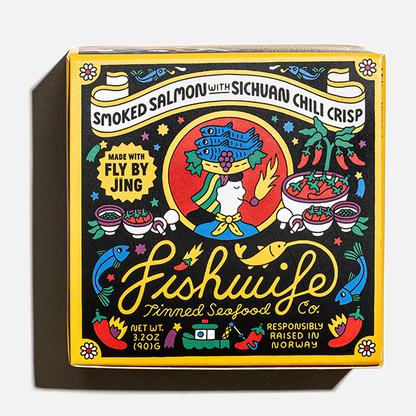 This popular collaboration with Fly By Jing, known for their all-natural Sichuan pantry essentials, showcases smoked salmon brined in garlic salt and brown sugar. The salmon is expertly hand-packed into tins combined with authentic Sichuan Chili Crisp for a bold, flavorful experience.