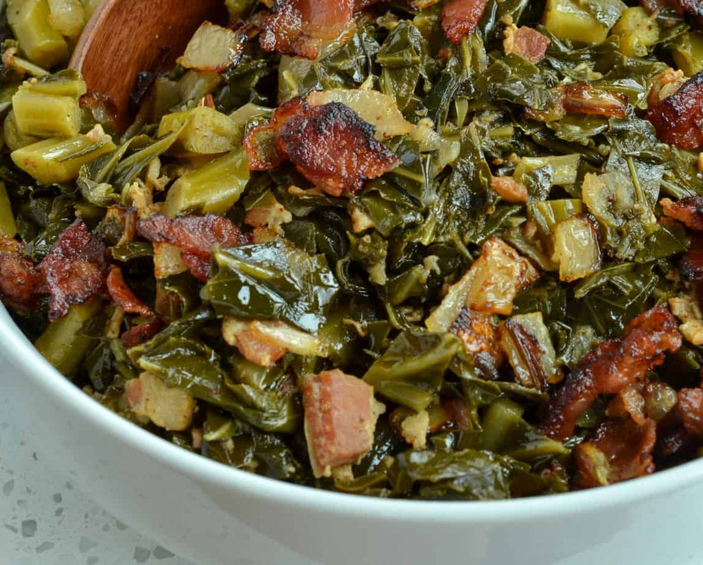 Tender greens cooked w/ onions and turkey